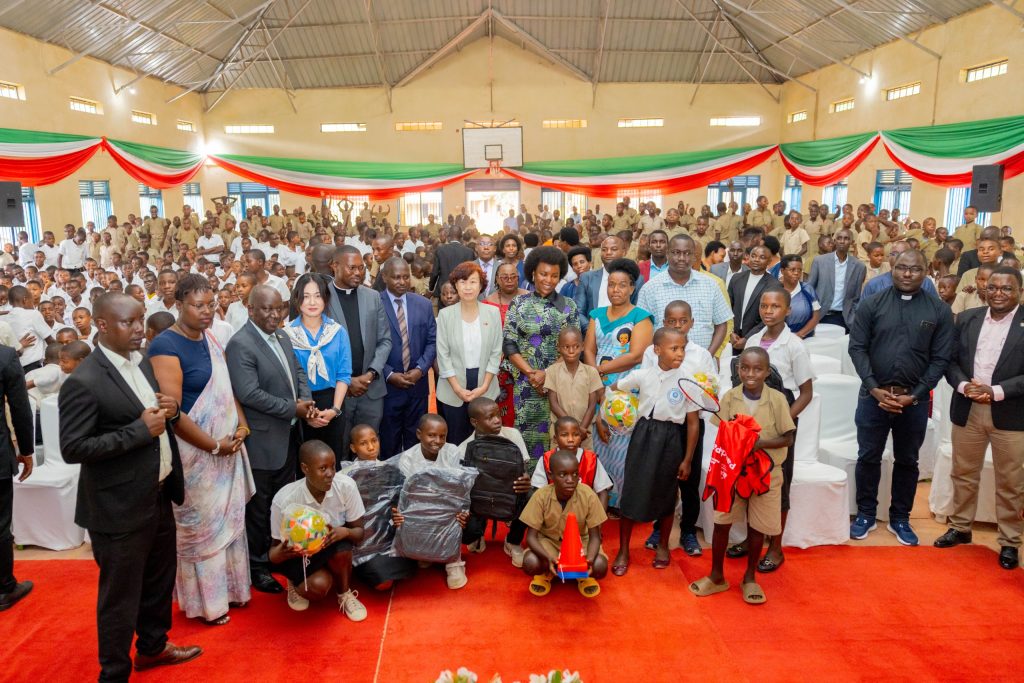 On Monday, November 24, 2025, the First Lady of Burundi, Angeline Ndayishimiye, presented various sports kits to the Saint Louis Gonzague Primary School, located on Nyabiyorwa Hill in the Mukaza commune, Bujumbura province.